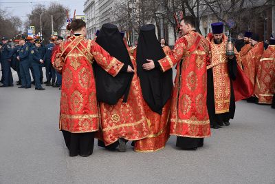 Прихожане прошли по улицам Екатеринбурга с хоругвями и иконами, священники несли ковчеги с частицами мощей православных святых: святой великомученицы Екатерины Александрийской, святого благоверного Александра Невского, святого праведного Симеона Верхотурского и другие святыни, а также Благодатный огонь из Иерусалима.