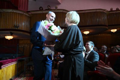 Музыкальный подарок героям торжества приготовили артисты театра музкомедии, показавшие гостям спектакль «Полет» о легендарной уральской гимнастке Лилии Назмутдиновой.
