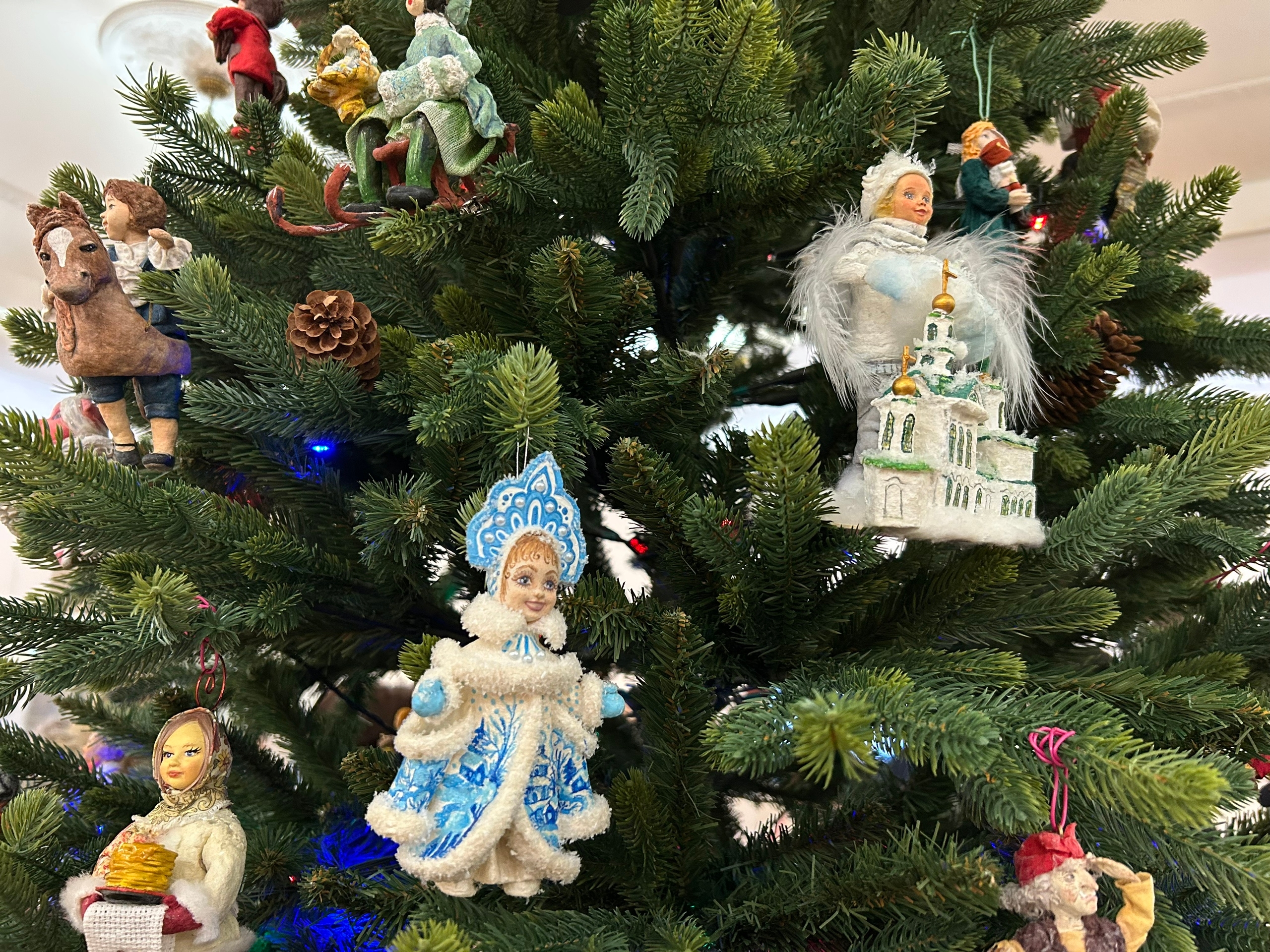 Центральное место занимает новогодняя ель, усыпанная миниатюрными шедеврами. Мастера со всей страны представили свое видение образов из музыки Петра Ильича Чайковского: здесь соседствуют изящные балерины, строгие солдатики и сказочные персонажи вроде Шарманщика. Каждая игрушка существует в единственном экземпляре.
