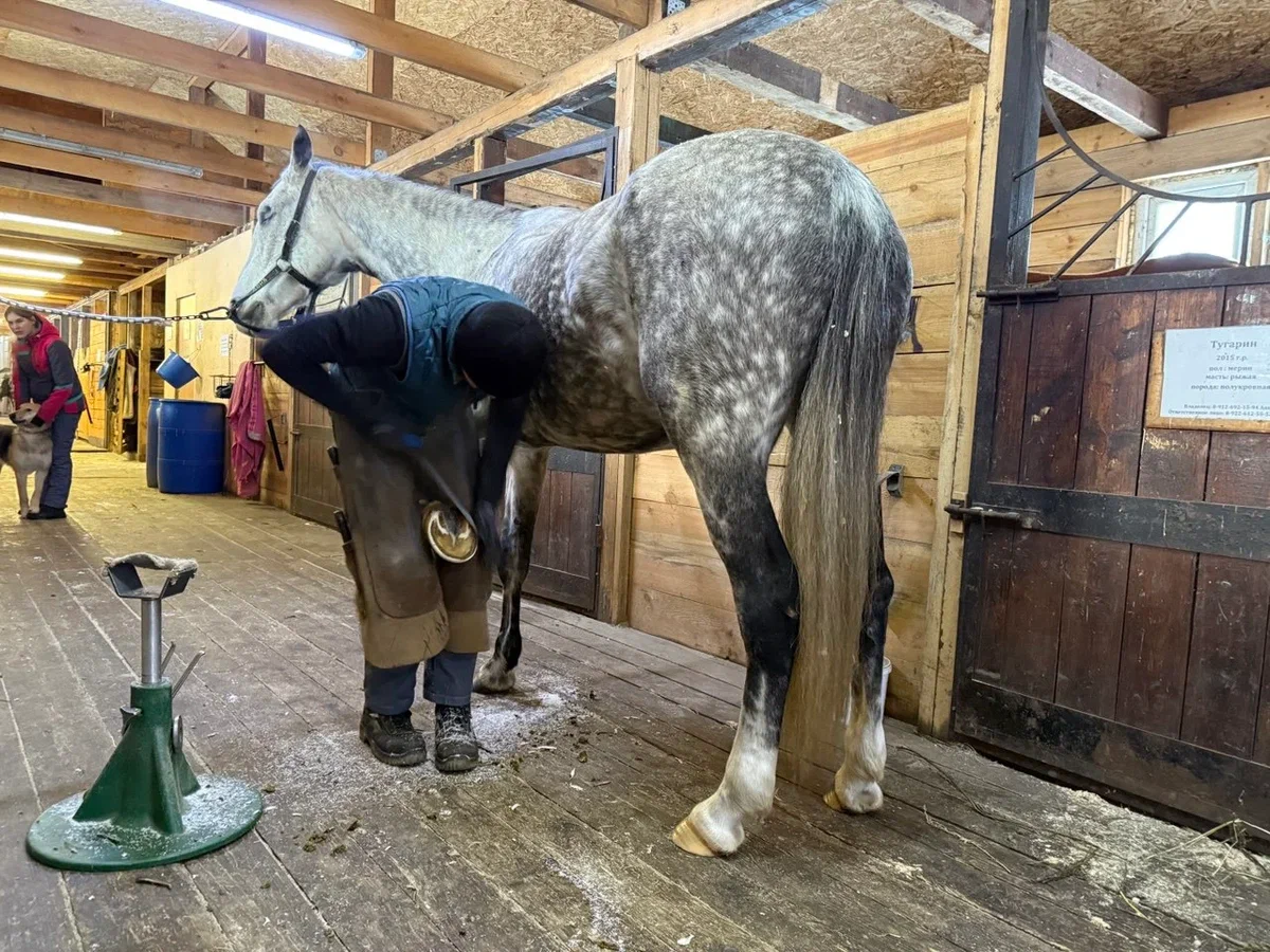 Сегодня у Людмилы в конюшне — десять голов уэльских пони, 8 – пони-класс и 15 взрослых лошадей. Все они требуют постоянной заботы. Так что, кроме штатных работников, приходится привлекать специалистов со стороны. Если даже не брать во внимание кормление, поение, выгул, осмотр ветеринара и дрессировку, то животным необходима регулярная обработка копыт. Для этого в клуб привлекают коваля — стороннего специалиста по расчистке и ковке лошадей.