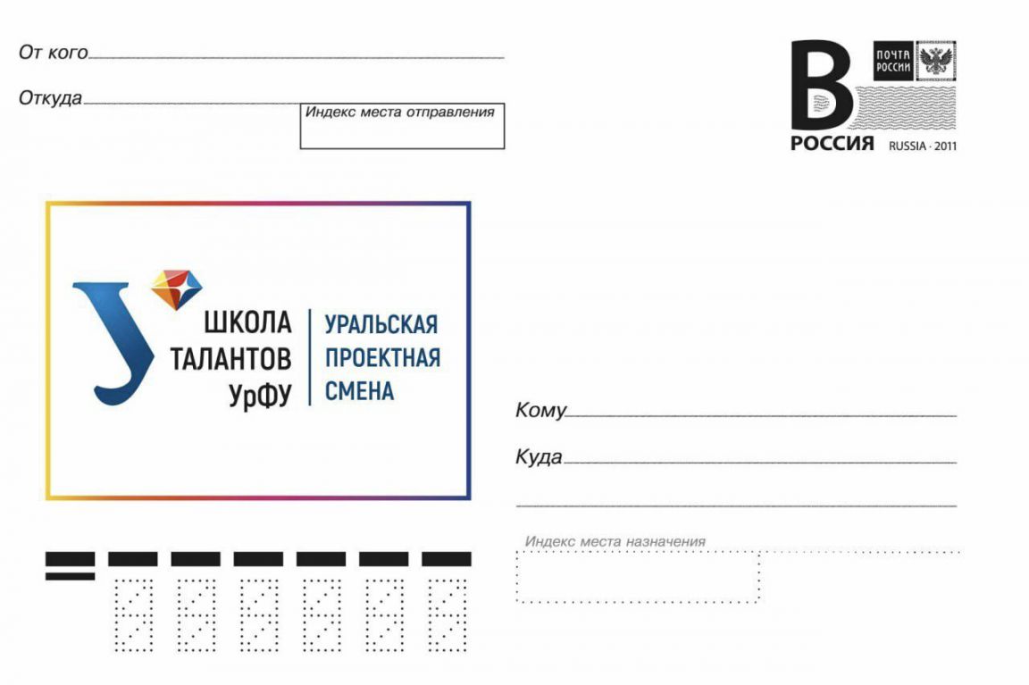 Почта России и Уральский федеральный университет к 10-летию Уральской проектной смены — одного из ключевых образовательных проектов Свердловской области — выпускают в обращение уникальную почтовую карточку с литерой «В». Она будет отпечатана ограниченным тиражом в 1 000 экземпляров, сообщили в пресс-службе Свердловского филиала Почты России.