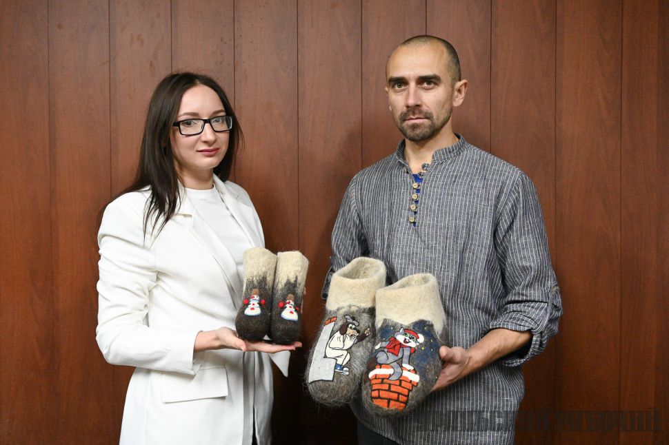 Когда валенок готов, в него нужно вдохнуть жизнь. И здесь к Виталию присоединяется его супруга Ольга..