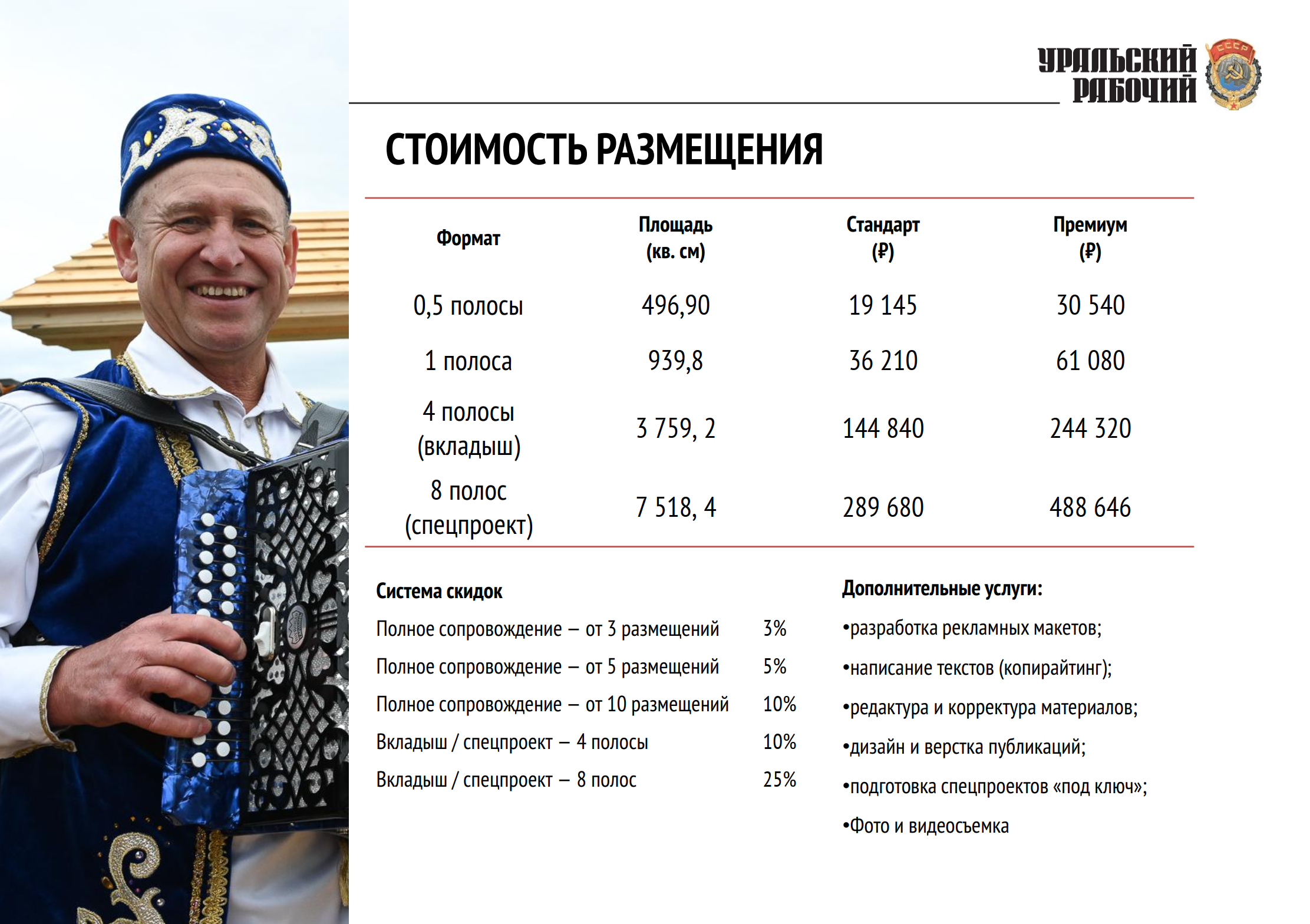 Калькулятор стоимости рекламы в газете "Уральский рабочий" (8.8Кб)